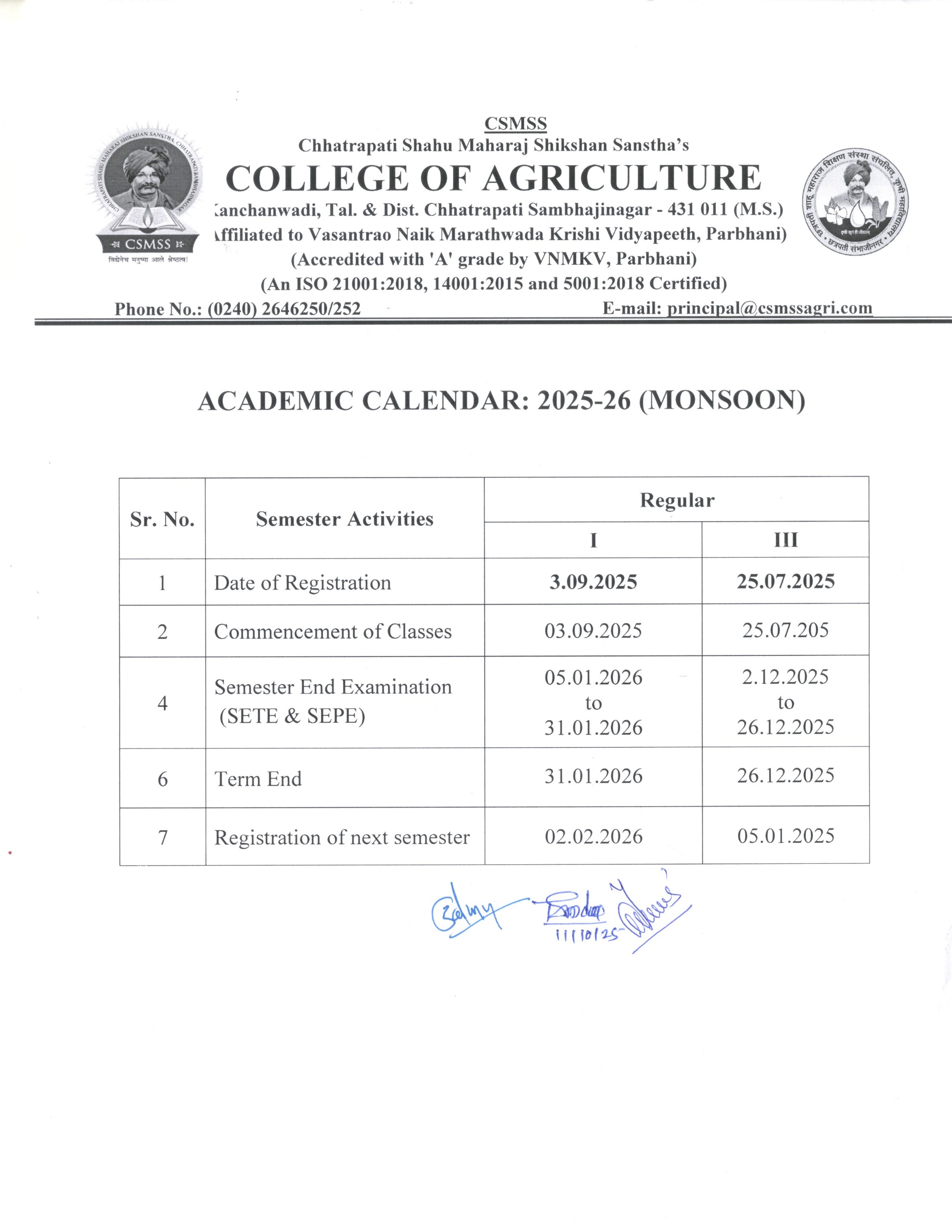Academic Schedule